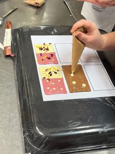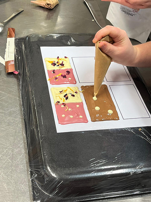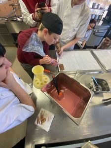 Die Wirtschaftswerkstatt im SJ 2022/23 stand unter dem Motto „Love is in the Air“. Die Schüler:innen der 2FW verkosteten, produzierten und verpackten selbst gemachte Schokolade, die passend am Valentinstag bei einem aufwändig dekorierten Stand in der Aula angeboten wurde. Die mit Blüten und Herzen liebevoll dekorierten Schokoladentafeln fanden großen Anklang und so wurden mehr als 200 Tafeln verkauft.